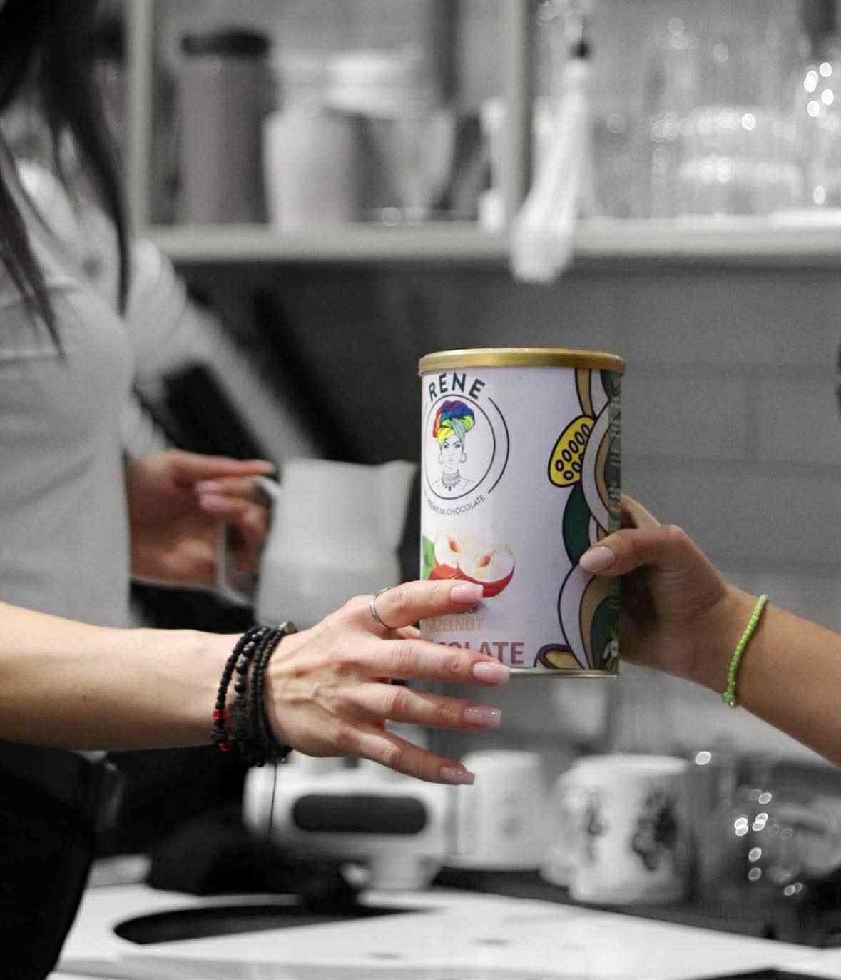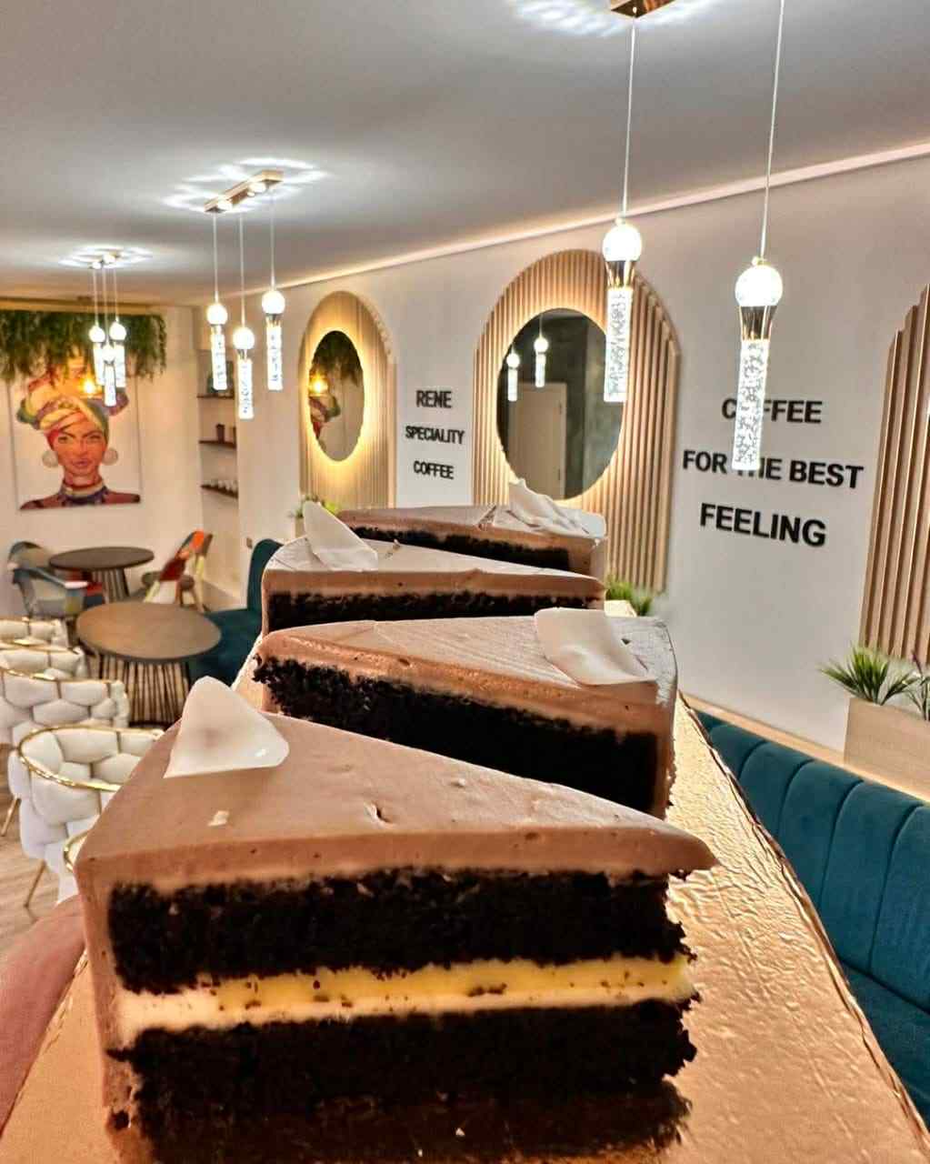 კაფეში ექსკლუზიურად წარმოდგენილია საქართველოში შემოტანილი "rene" ბრენდის "speciality" უმაღლესი კატეგორიის ყავა, ამავე ბრენდის სხვადასხვა შოკოლადის გემოები, მრავალფეროვანი ჩაის სახეობა და ნატურალური ხილის პიურეები. სტუმრებს შესაძლებლობა აქვთ, ისარგებლონ ქართული-ევროპული სამზარეულოს მიქსით.